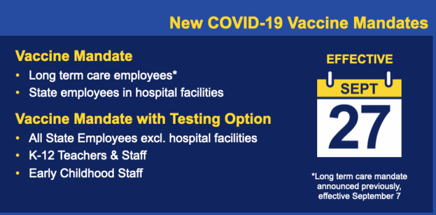 Lamont said the highly contagious delta variant convinced him to order that all state employees, teachers and staff in K-12 schools and day care be vaccinated by Sept. 27, expanding on a previous requirement for nursing homes.