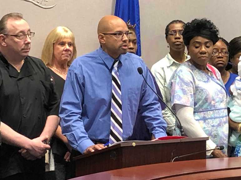 “I’m tired. I’m drained. I’ve been at Sunrise for 24 years,” said union member Jennifer Brown, who added she hasn’t had a pay raise in 15 years. “It’s time that they do the right thing. No one at our agency takes insurance because it is not affordable.”