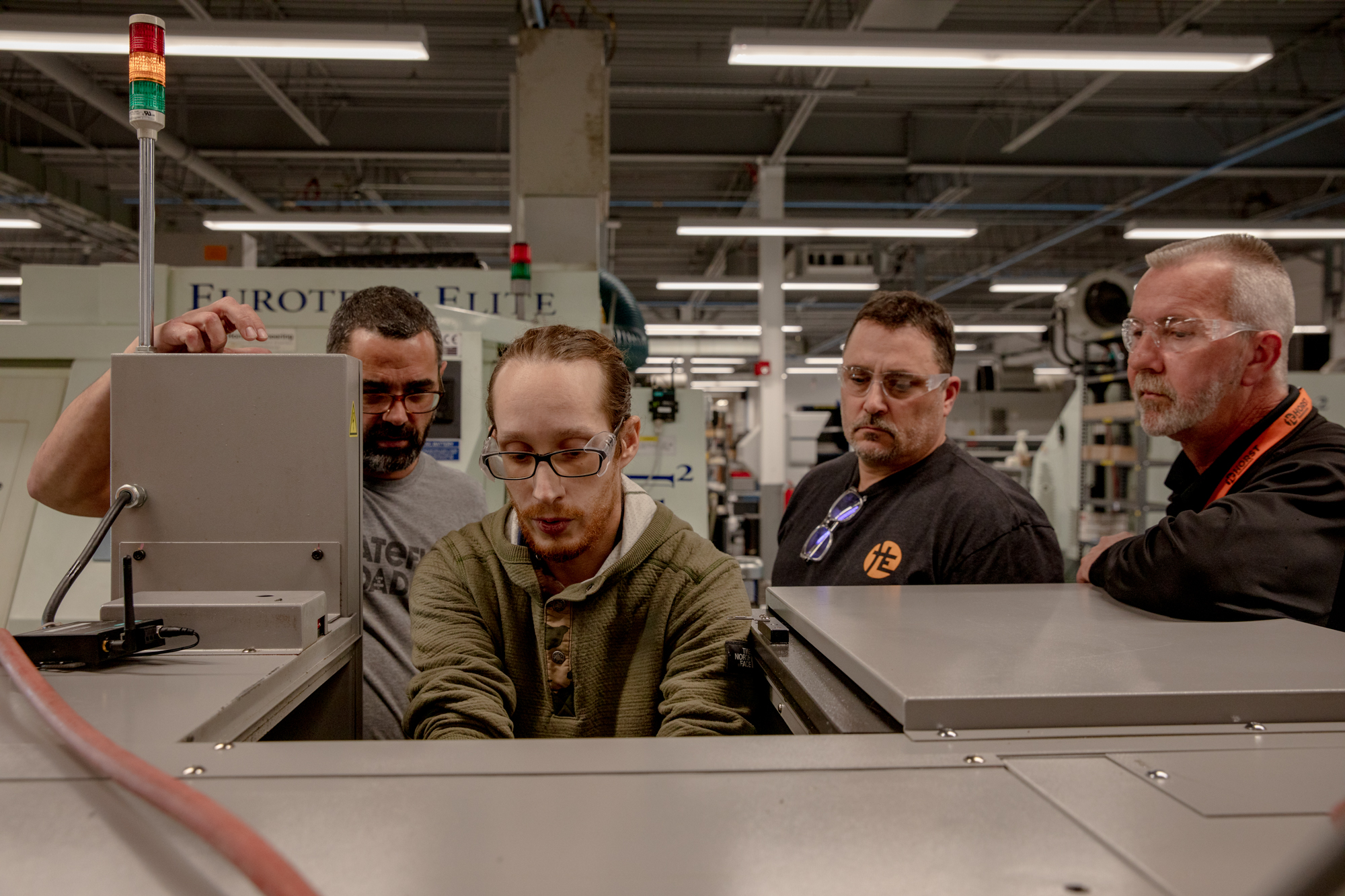 At Horst Engineering, an aerospace manufacturing company in East Hartford, every machine on the factory floor is connected up to data cables running along the ceiling. They carry detailed designs from engineers’ desks to the precision grinders and tools, which churn out bolts, screws, fittings, pins and other custom components, some with accuracy down to 0.00005 inch.