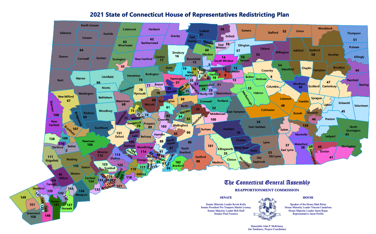 The closely guarded map was posted on the Reapportionment Commission website after the unanimous vote, giving the public and rank-and-file House members their first glance at Connecticut’s new political terrain.