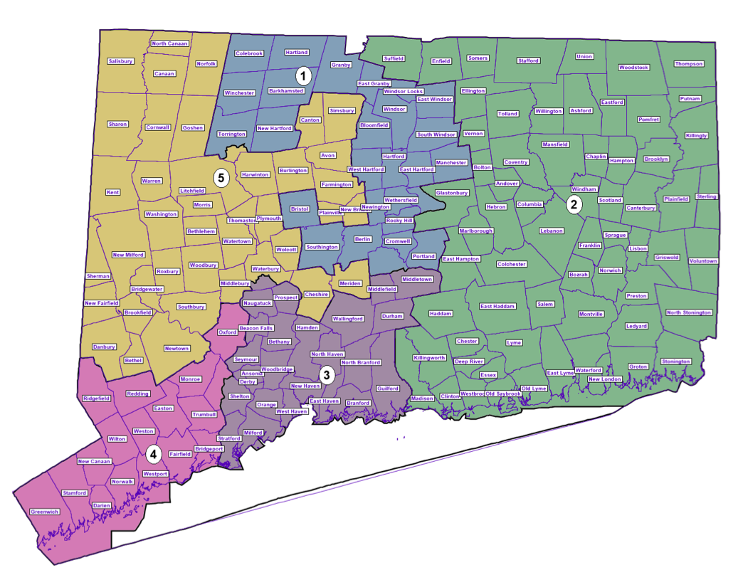 The 2020 Census found that growth in Fairfield County required the 4th and, to a lesser degree the 5th, to lose population, while the already sprawling 2nd of eastern Connecticut needed to pick up 21,288 people. Persily moved more of Glastonbury from the 1st to the 2nd.