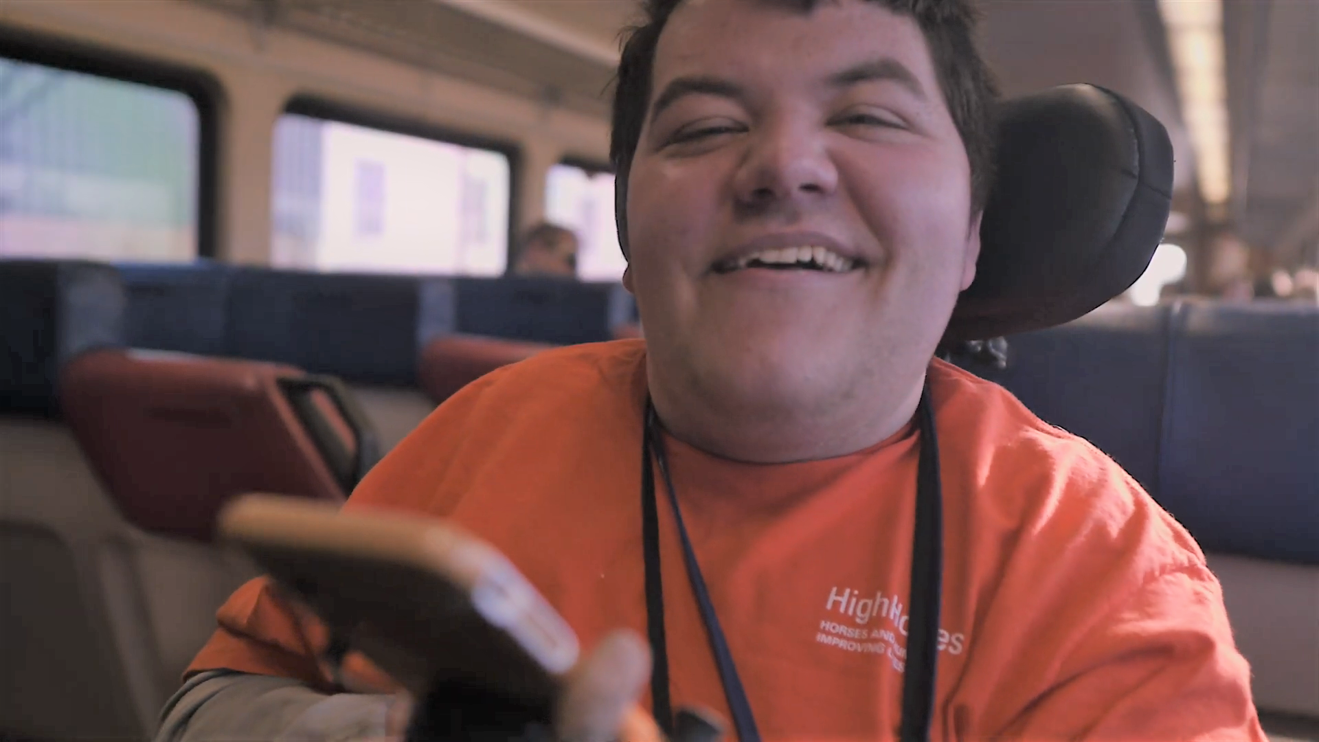 Bad weather is a challenge especially on icy surfaces. “I feel safe,” he says. “It just means you have to take extra time.”  Heavy rain is more of a hassle as he can’t carry an umbrella but has to keep his chair’s joystick controls dry.