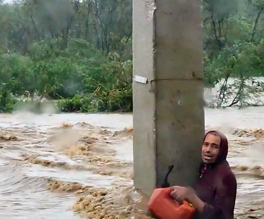 Authorities reported one death from the hurricane by Monday afternoon — a man swept away by a flooded river in the inland town of Comerio.