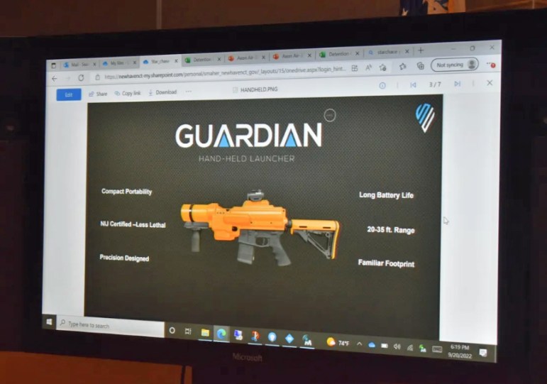 New Haven is seeking to acquire 12 StarChase devices that can shoot GPS projectiles directly from police cars, as well as two handheld devices. Every police district will have at least one StarChase car, Jacobson said.