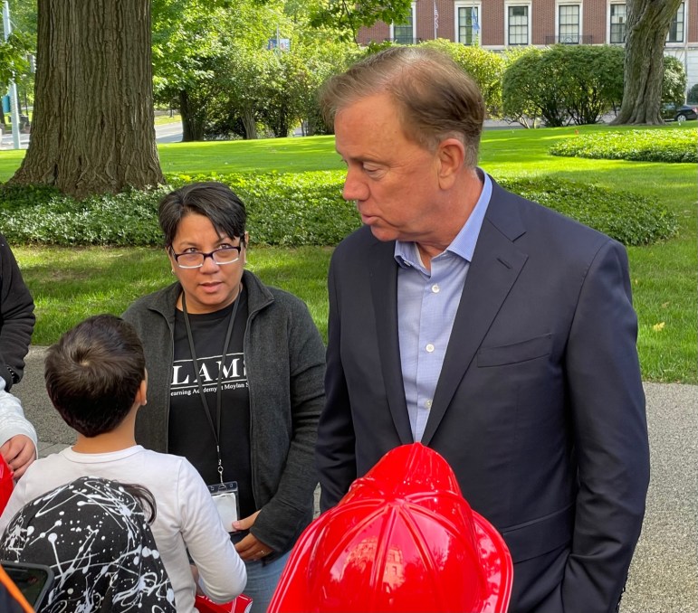 “Smart kiddy. We don’t put them on during the cartoons, so he’s watching the news,” Lamont said, laughing after the encounter. “That’s what I told him. Keep at it.”