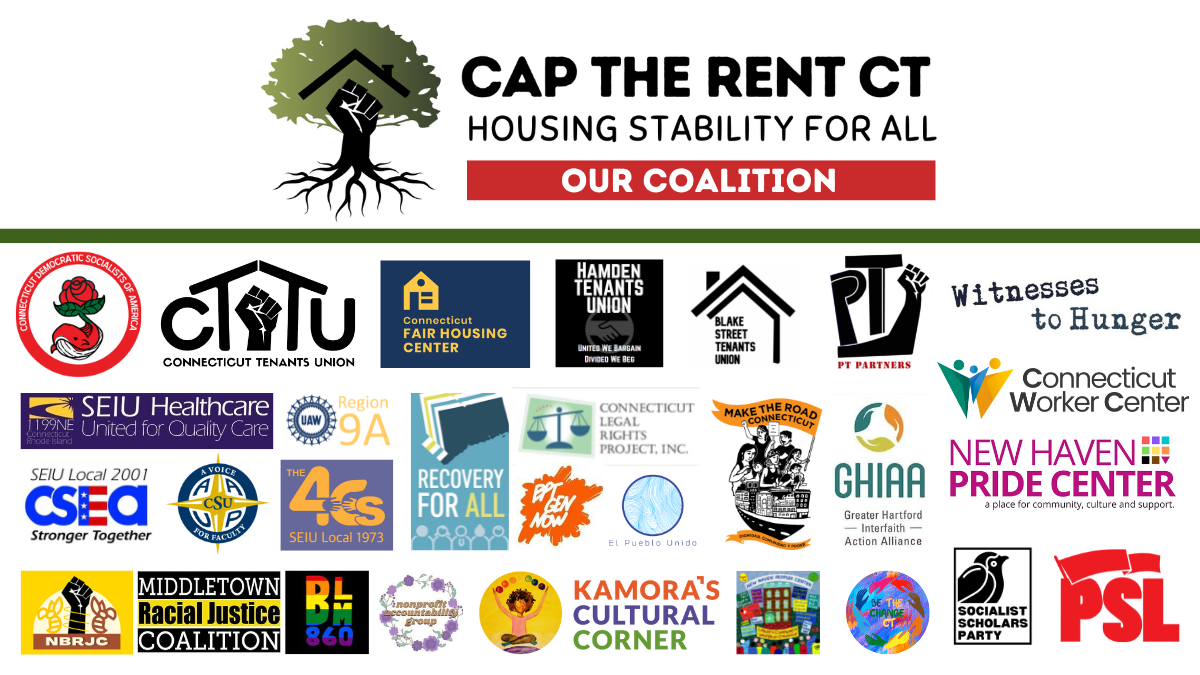 In 2023, tenant unions and our allies will take the fight for fairer rents to the State Capitol. The Connecticut Tenants Union, and each of our affiliated local unions, will push for a 2.5% cap on annual rent increases, along with an expansion of “good cause” eviction protections to all tenants.