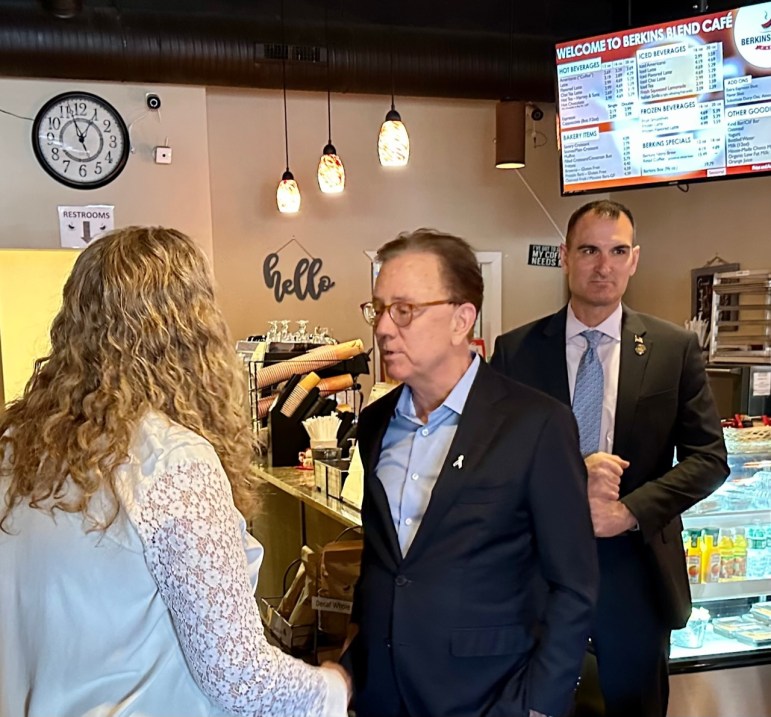 On the same day Republicans were calling for a suspension of the mileage tax, Lamont held a press conference at a coffee shop in Glastonbury to promote his proposal to cut the income tax.