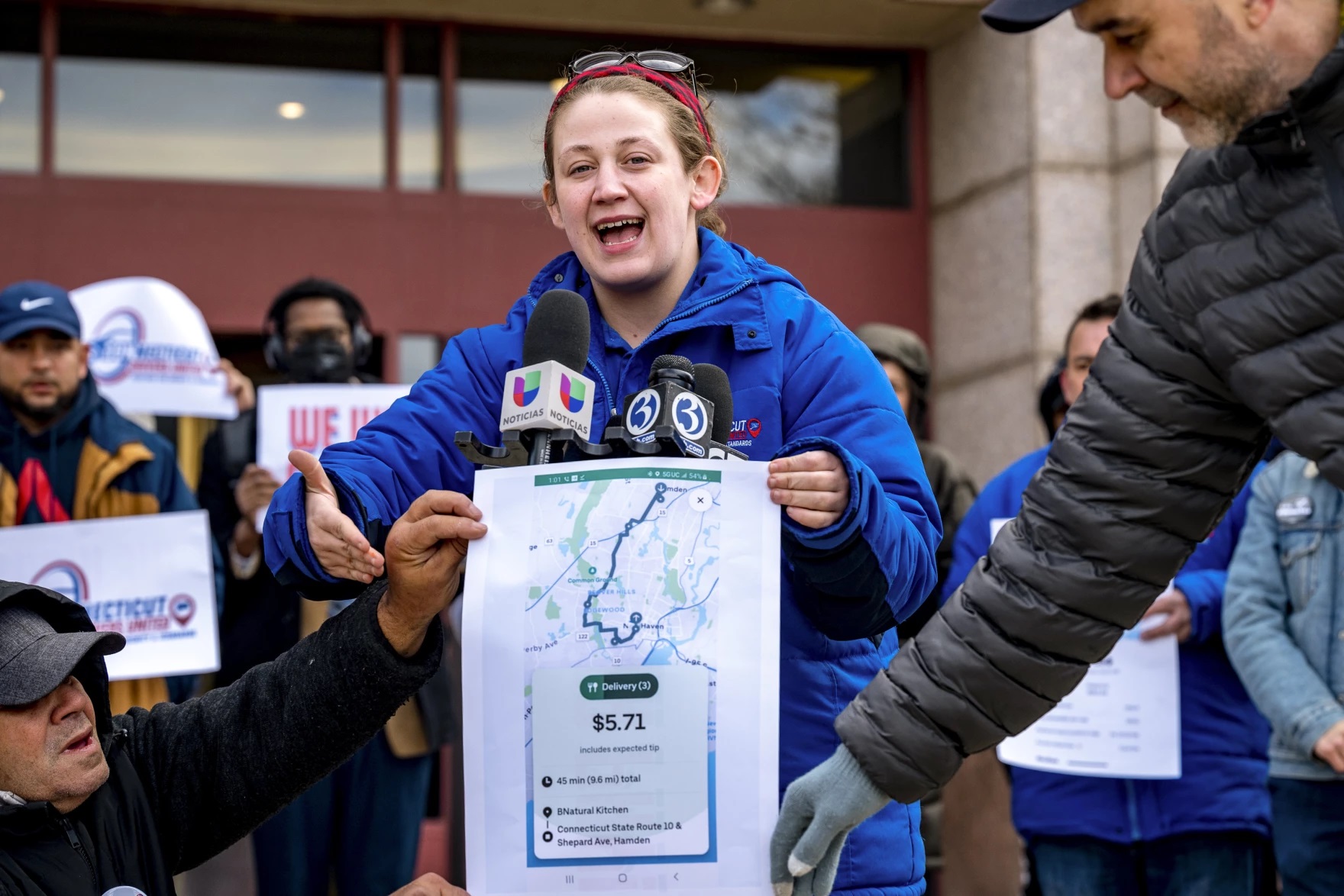 Johnson, 29, stood with other members of the group in Hartford and braved the cold weather to support the proposed state senate bill. The concept would give drivers minimum pay per trip, make rideshare companies pay for fees such as tolls, and provide receipts to drivers and passengers.