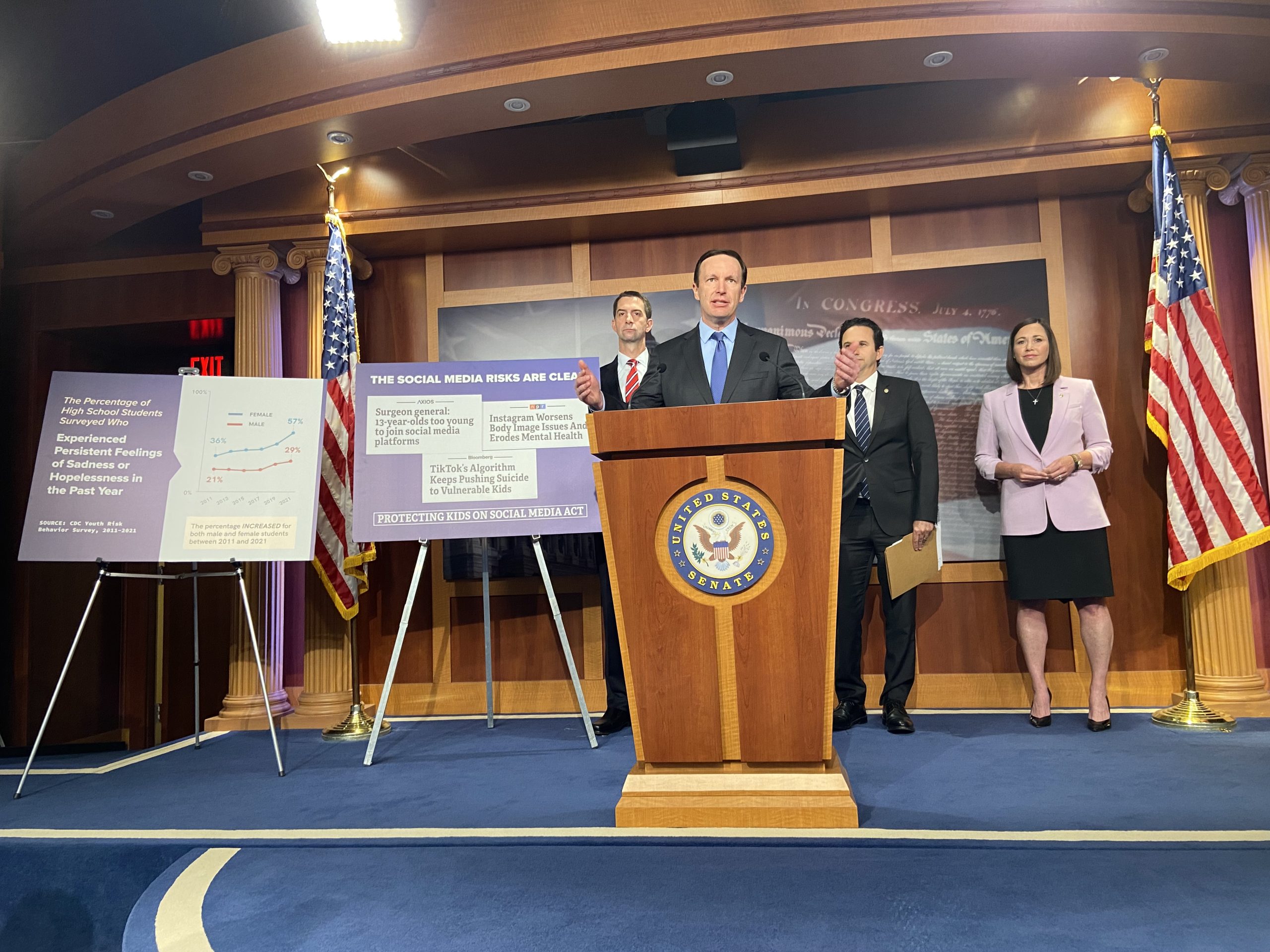 Murphy is an original co-sponsor of the Protecting Kids on Social Media Act along with Sen. Katie Britt, R-Ala., which was introduced by Cotton and Schatz. Britt said she faces challenges with social media when it comes to her own teenagers, saying “we’re parenting in a new age.”