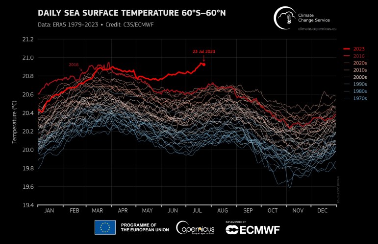 After that, cool weather was followed by sudden heat, more drought, catastrophic rains twice, one week apart in July, and wildfire smoke from Canada. Throw into the mix the three hottest days on the planet in early July along with hottest ever month in June — topped a month later by July and possibly again in August — unprecedented warm ocean temperatures in the Atlantic and Pacific, an Atlantic hurricane prediction updated to be above-average, and increasing certainty that the already existing El Nino will have an impact on the Northeast this winter.
