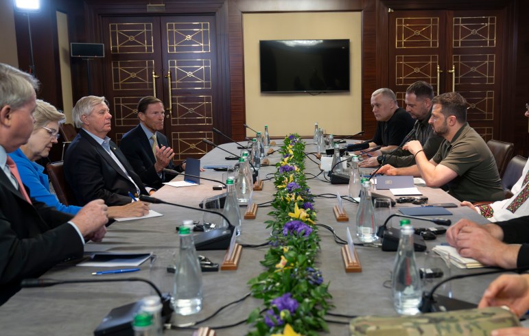 Blumenthal traveled on Wednesday with Sen. Lindsey Graham, R-S.C., and Sen. Elizabeth Warren, D-Mass., to spend the day in Kyiv. On Thursday, he was headed to Brussels to meet with leadership of the North Atlantic Treaty Organization about how the group can also do more militarily and economically for the region.