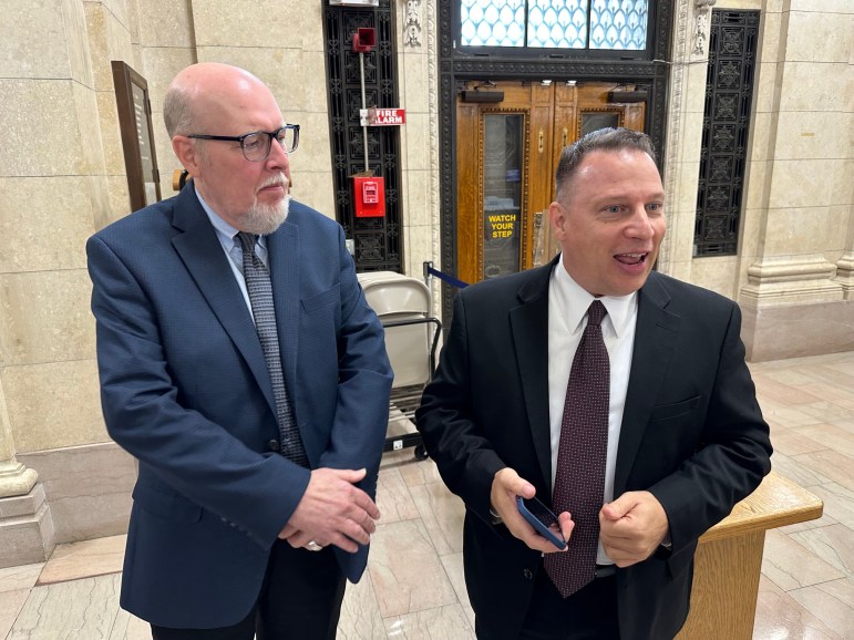 “We’re here because we’re testing this law,” Sampson said after the arguments Wednesday. “I mean, the fact of the matter is we had the chance to walk away, like the rest of our colleagues did and say, ‘Okay, we won’t do it again.’ But to me, that’s not good enough.”