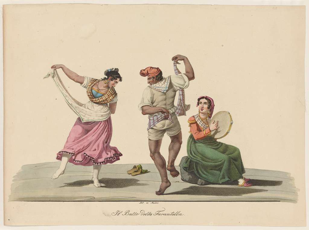 The pizzica is a trance-like ancient dance considered rebellious by the ancient Romans for uniting people across classes. Credit: NYPL public domain