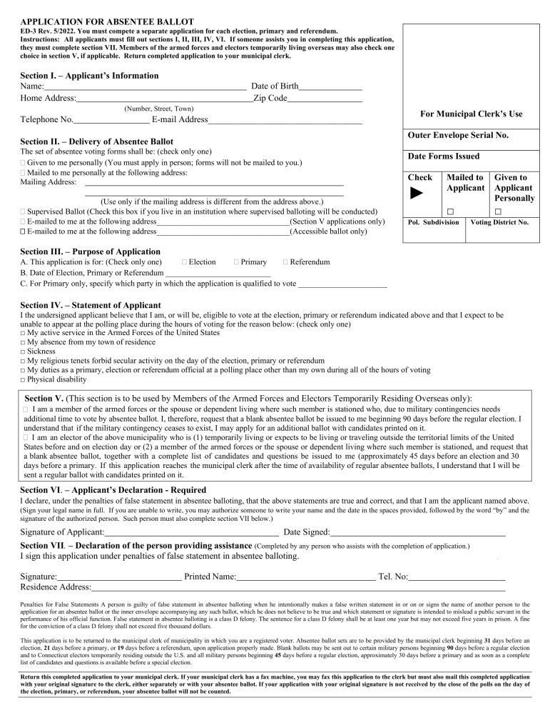 To calculate the number of days between when the application was signed to when it was received by the clerk, we compared the date the voter signed the application to the date noted on the town clerk’s stamp, which they applied upon receiving the application.
