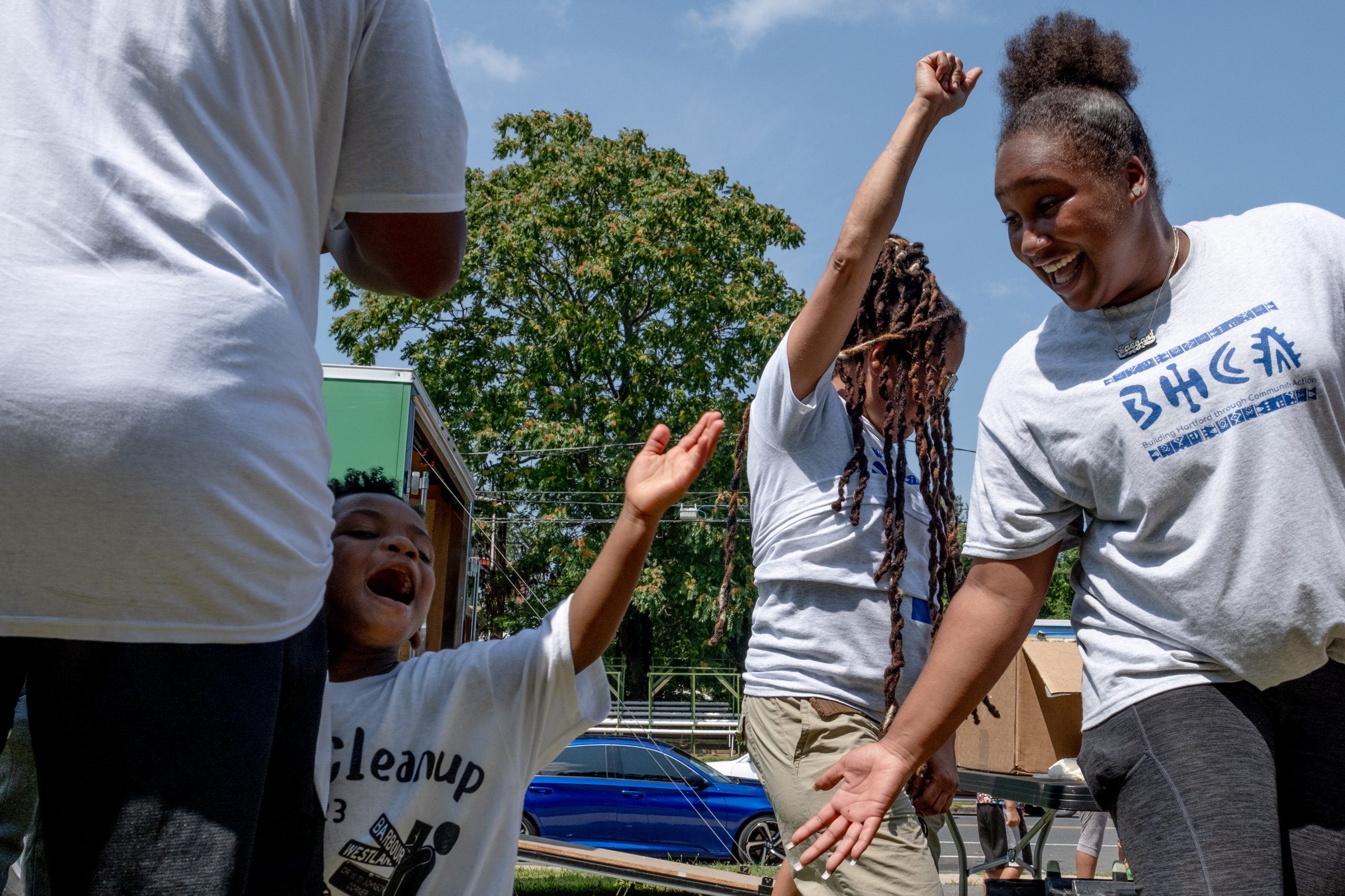 BHCA members share a moment of celebration after cleaning up a section of the neighborhood. Credit: Shahrzad Rasekh / CT Mirror
