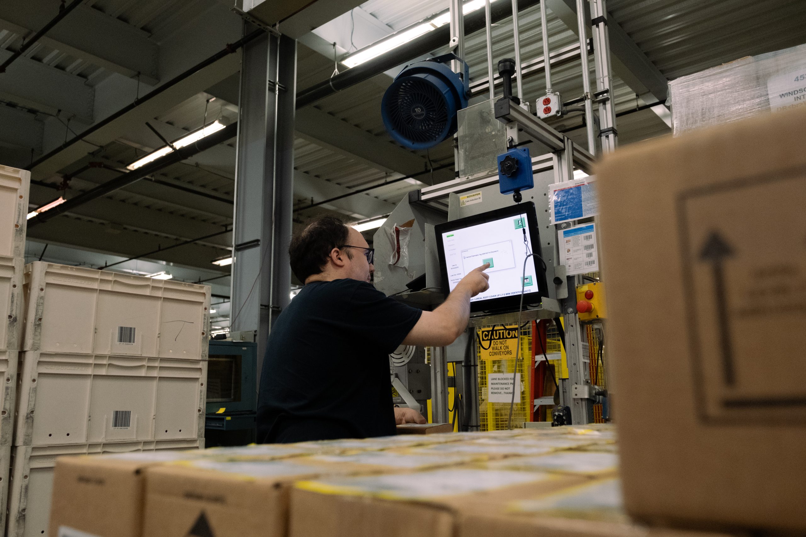 An employee enters products into a screen at his station at the Walgreens distribution center in Windsor. Credit: Shahrzad Rasekh / CT Mirror
