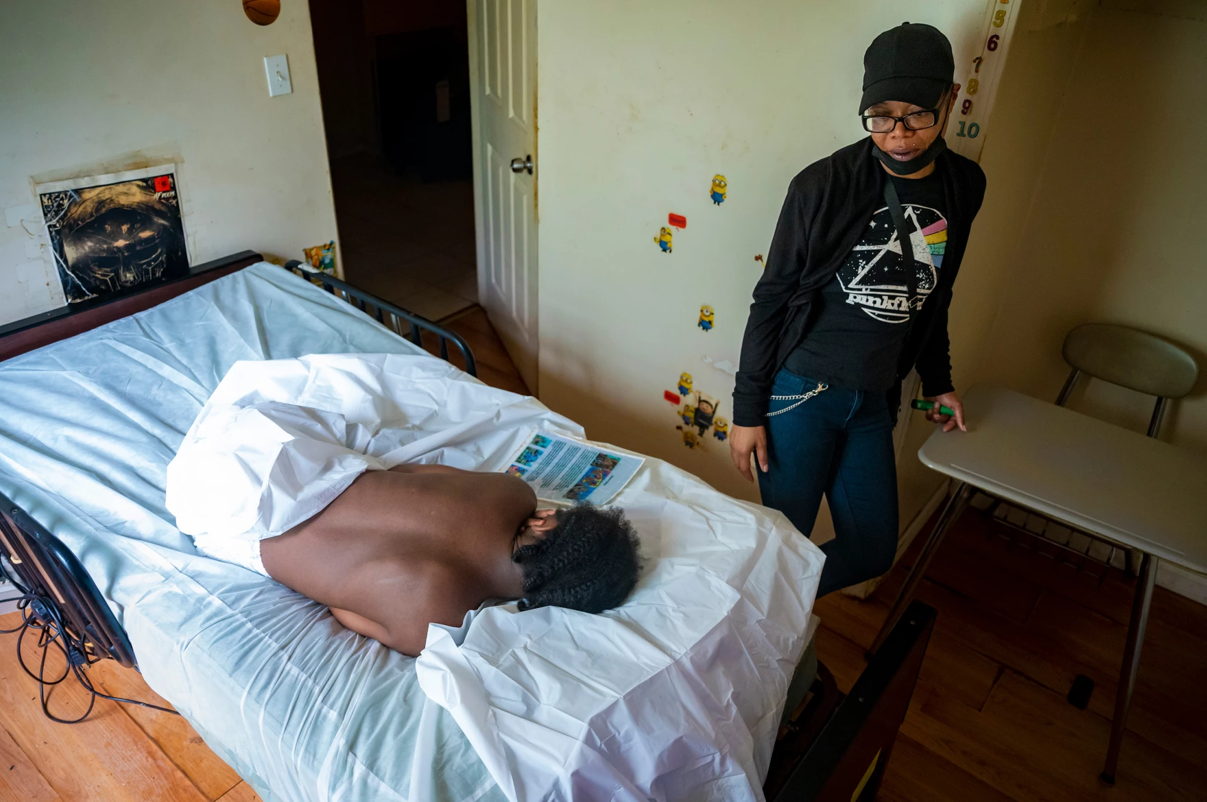 She says the problems started around five years ago. The building was foreclosed on and began to fall into disrepair, with water flooding her apartment and damaging medical equipment for her son, Andre, who’s nonverbal and autistic.
