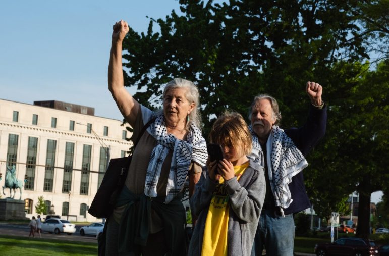 “When we protested against South African apartheid, we actually got the state of Connecticut to divest,” said John Fussell, a West Hartford resident in the crowd.