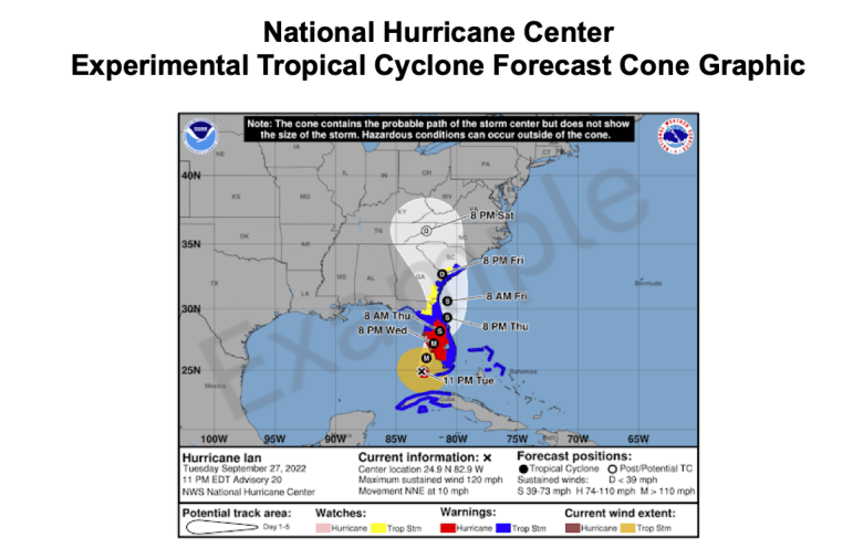 NOAA also unveiled a new version of its well-known cone that shows on a map where a hurricane is likely to go. The new version, which is experimental for the upcoming season, will show more broadly where impacts from a hurricane might reach beyond the standard cone, and what those impacts might be. What might that eventually mean for a hurricane deductible trigger? We don’t know that either.