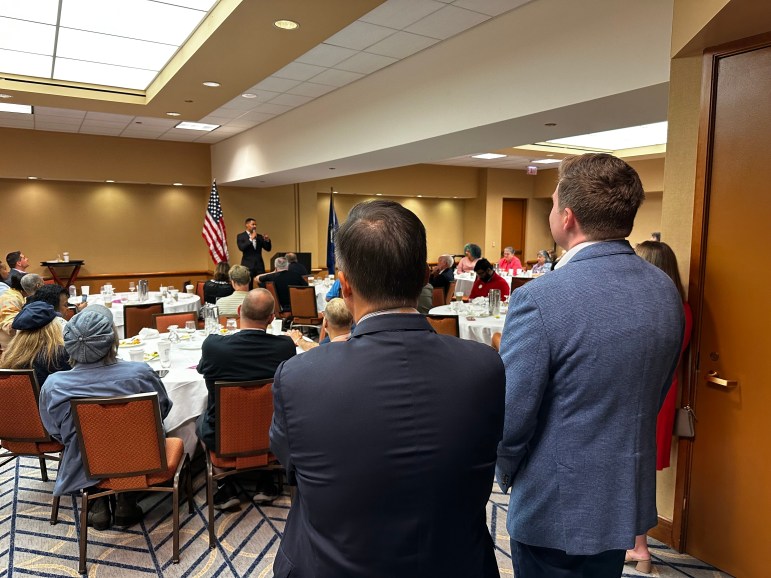 The breakfast ran long. Scanlon and Russell, the first millennials elected to statewide office in Connecticut, had the last speaking slots and the unenviable job of following the energizing U.S. Rep. Rosa L. DeLauro to the microphone, then competing to keep an audience as Hochul departed with Lamont and delegates rushed for selfies.