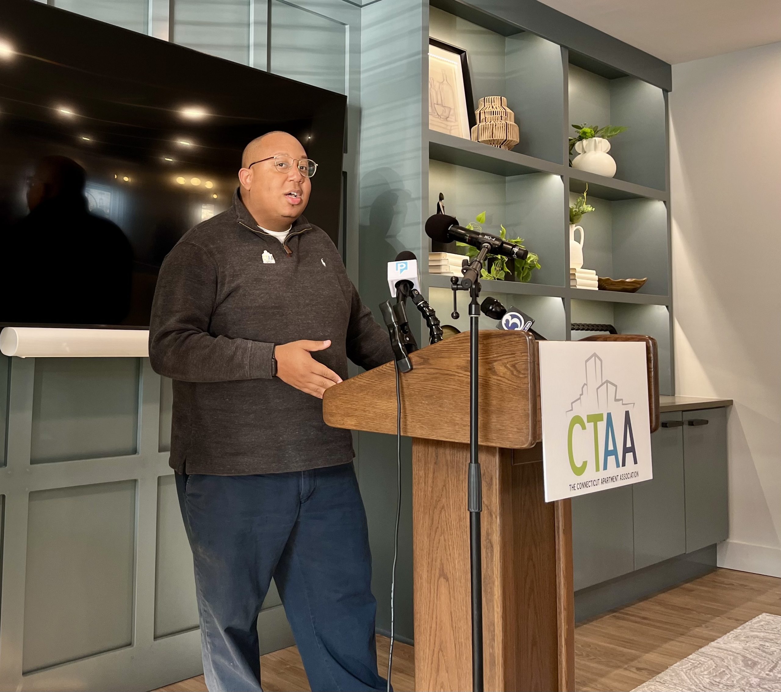 At a press conference in Newington, the Connecticut Apartment Association asked lawmakers to take steps to increase the number of multi-family units in the state, especially near public transit, make the permitting process easier for builders and enact measures to help developers more easily turn commercial properties into apartments.