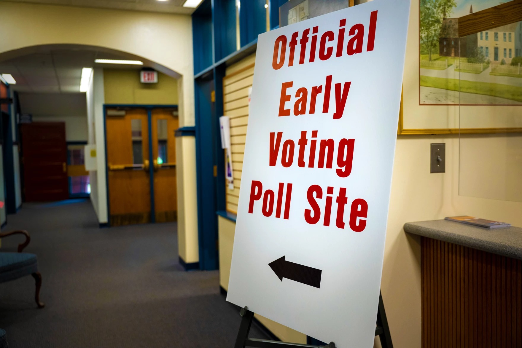 An early voting sign on Aug. 7, 2024. Credit: Tyler Russell / Connecticut Public