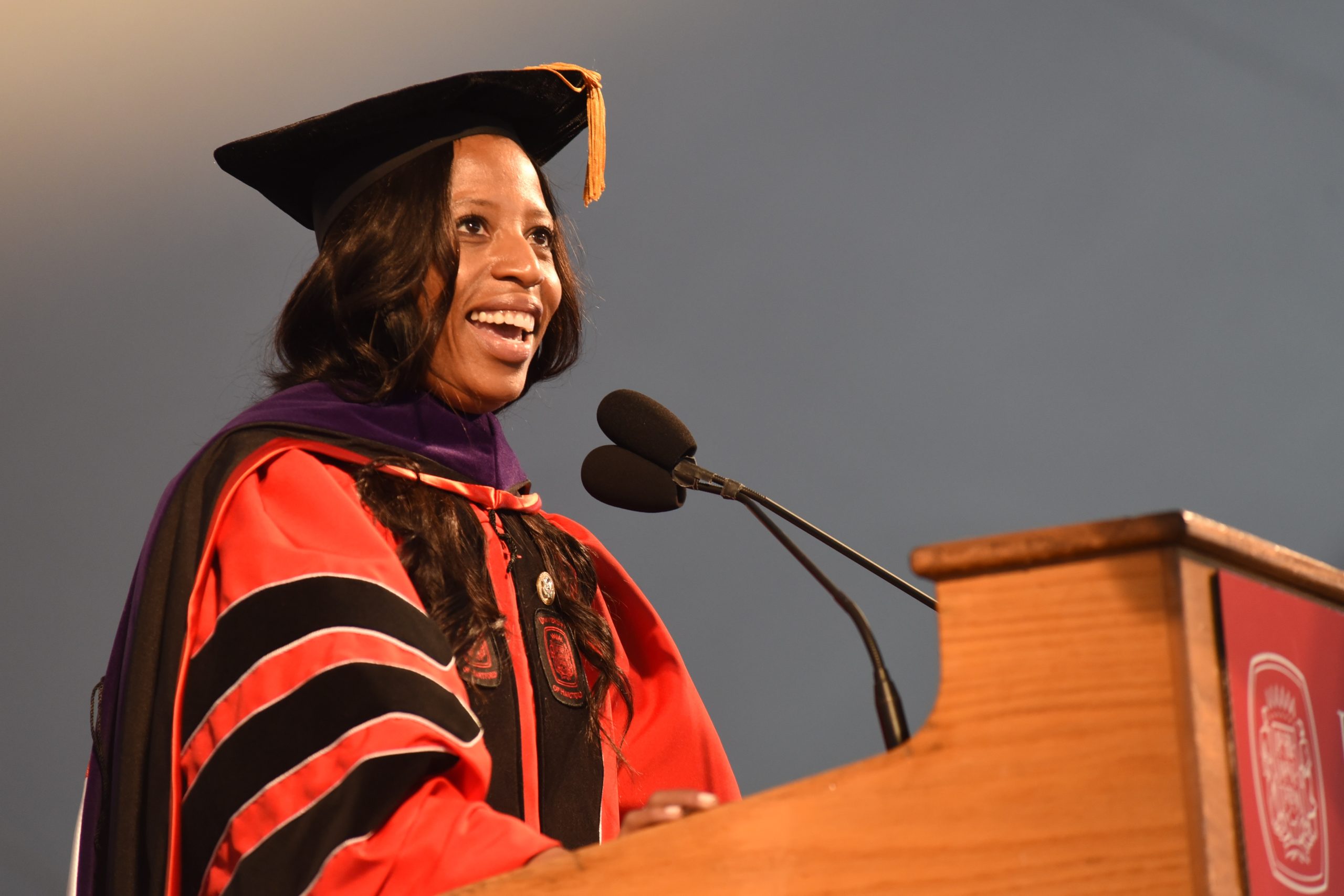 Former Utah Rep. Mia Love, a graduate of the University of Hartford, gave the school's 2017 undergraduate commencement address. Credit: Jon Olsen / University of Hartford