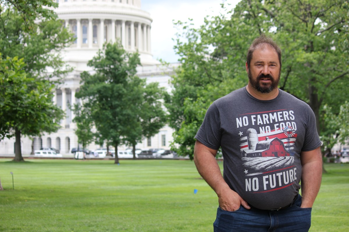 As he weaved through crowded hallways, more people took notice of his shirt that read “No farmers, no food, no future.” He easily stood out in a sea of suits.