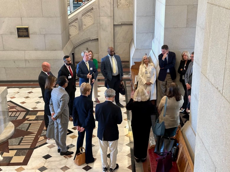 Hospital executives and their lobbyists gathered before their meeting with Gov. Ned Lamont. Credit: mark pazniokas / ct mirror