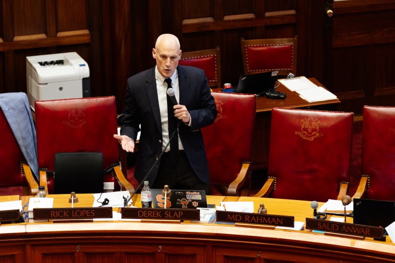 A West Hartford Democrat, Slap said he recently has driven past several synagogues in his town, and “every single one of them, there is an armed guard outside.”