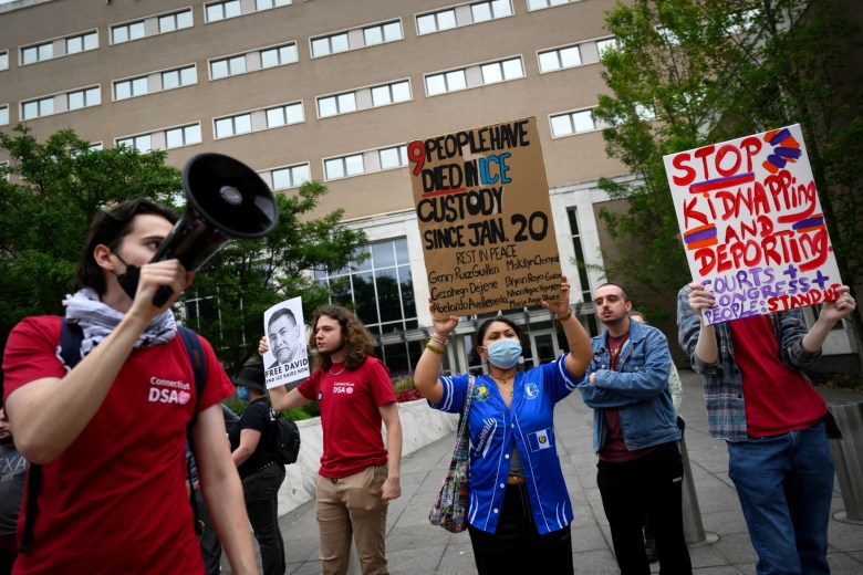 What’s happening in the nation is now happening in Connecticut, Fonseca Tapia told protesters. He encouraged attendees to connect with one another, because he said the community needs to stay together and to show up for immigrant neighbors.