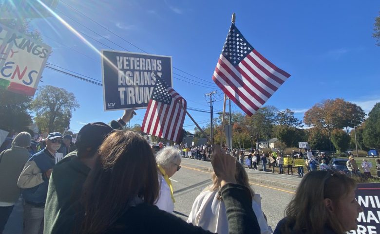 No. 4, his broad umbrella of “Communists.” Well, many of the folks marching Saturday were U.S. Veterans. One of them, a Navy guy from Lyme named Pete Lang, said, “I’m here because I fought against everything that’s happening to our country.”
