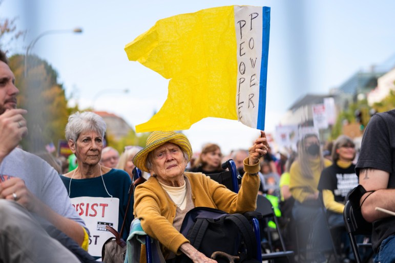 Accusation No. 1: “Elderly.” Depends on where you live. Connecticut skews older (it’s the seventh oldest state, with 18 percent of its population over 65, and a median age of 41). Suburban towns historically skew older than do cities. So, yes, most of the folks I marched with Saturday had gray hair. However, in places where the median age is younger (around 38 in both New York City and Portland, Oregon, for example) the crowd was predominantly young.