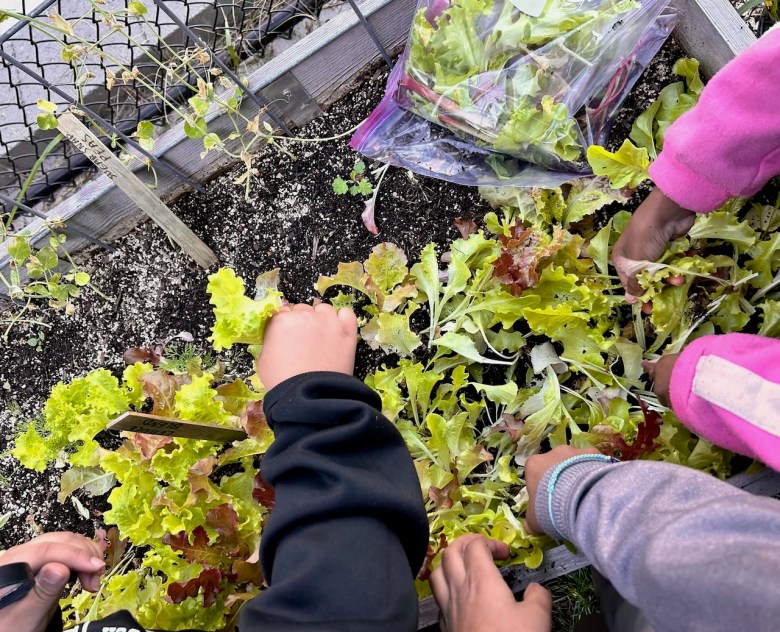 Children harvesting food at a school garden run by New Britain ROOTS. Credit: Lennon Favreau