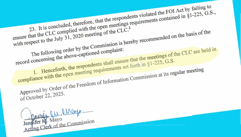 In 2020, I filed a complaint with the Freedom of Information Commission arguing that the CLC was violating the open-meetings law. The Superintendent and Board of Education disagreed, hiring two attorneys and a retired Connecticut Supreme Court justice to make their case. After hearings, testimony and years of delay due to COVID and legal maneuvering, the Commission ruled decisively: the law requires transparency.