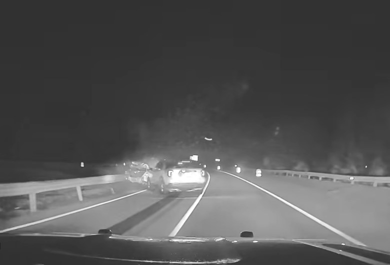 Investigators would calculate that Blanchette was going 75 mph when he aimed his cruiser at the Honda a second time, putting it into another spin; then a third time, when Blanchette pushed it into the guardrail. The Honda’s trunk flew open, the front crumpled. The chase was over, ended without injuries — but not without legal and political complications now unfolding.