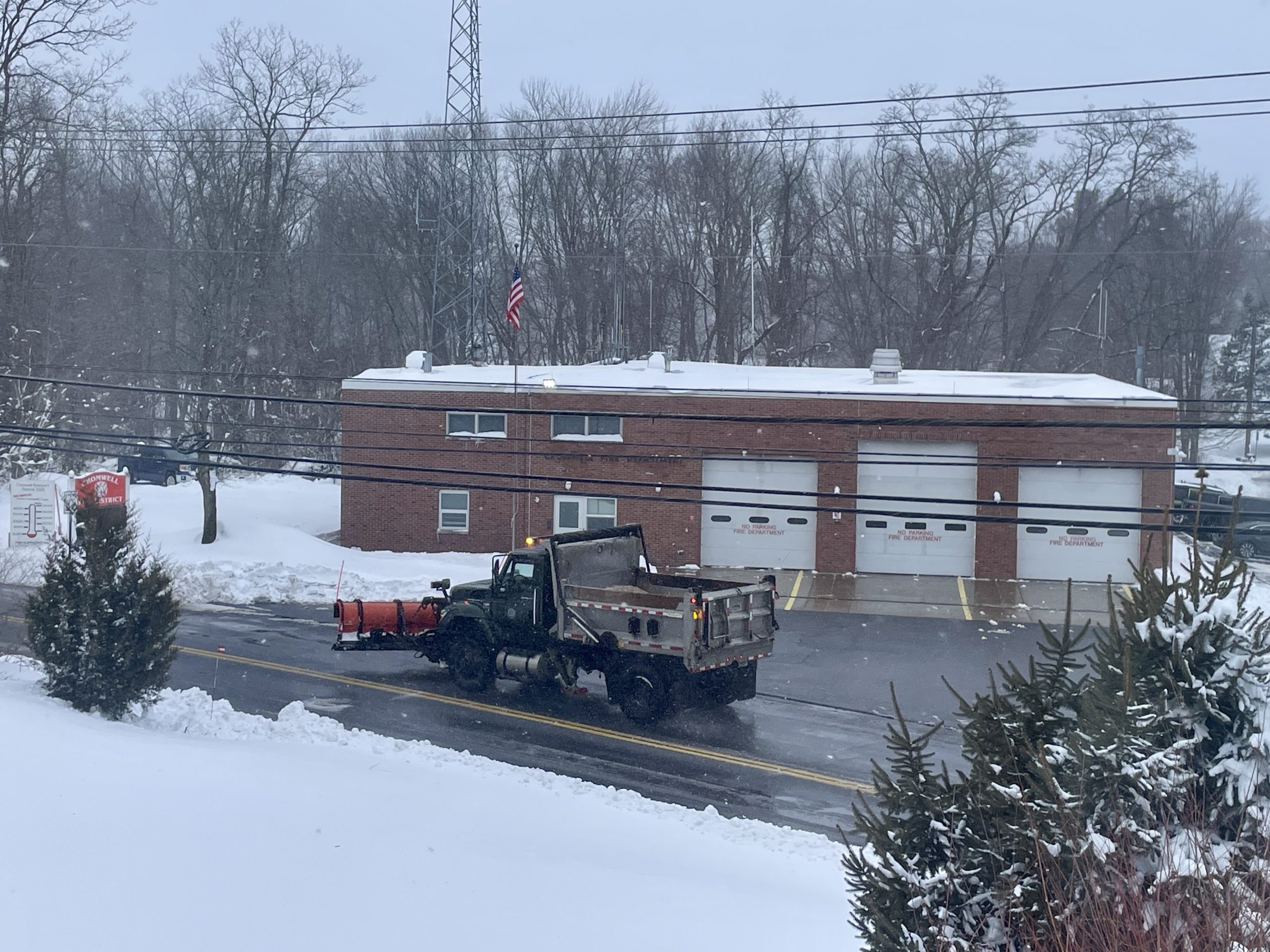 A plow truck in Cromwell on February 23, 2026. Credit: Erica E. Phillips / CT Mirror
