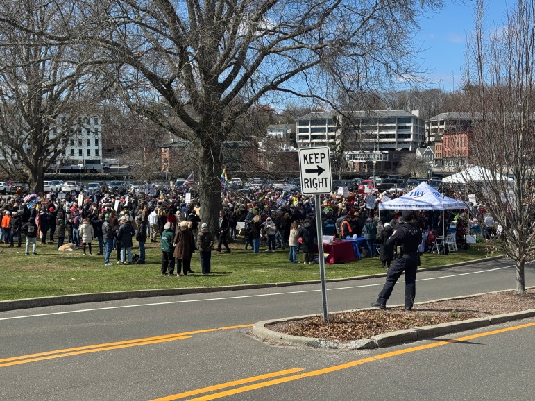 Hartford was the setting for just one of dozens of protests that took place across Connecticut. In Westport, thousands of demonstrators gathered, filling Jesup Green and lining nearby bridges with signs and chants of “No Kings.”