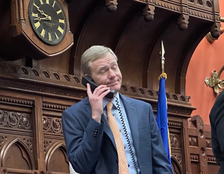 House Speaker Matt Ritter made the call a few minutes before 10 p.m., instructing House Majority Leader Jason Rojas to temporarily end the debate on absentee voting. Credit: mark pazniokas / ct mirror