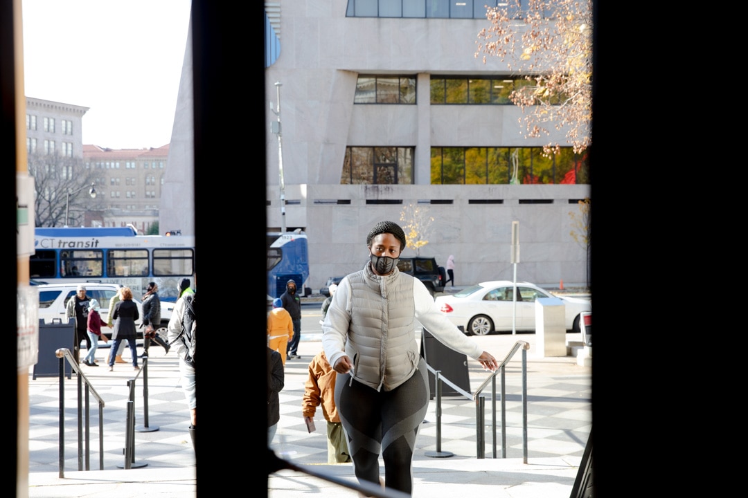A person walks towards the Hartford City Hall on Tuesday, Nov. 3, 2020 A person walks towards the Hartford City Hall to vote. Credit: Yehyun Kim / ctmirror.org