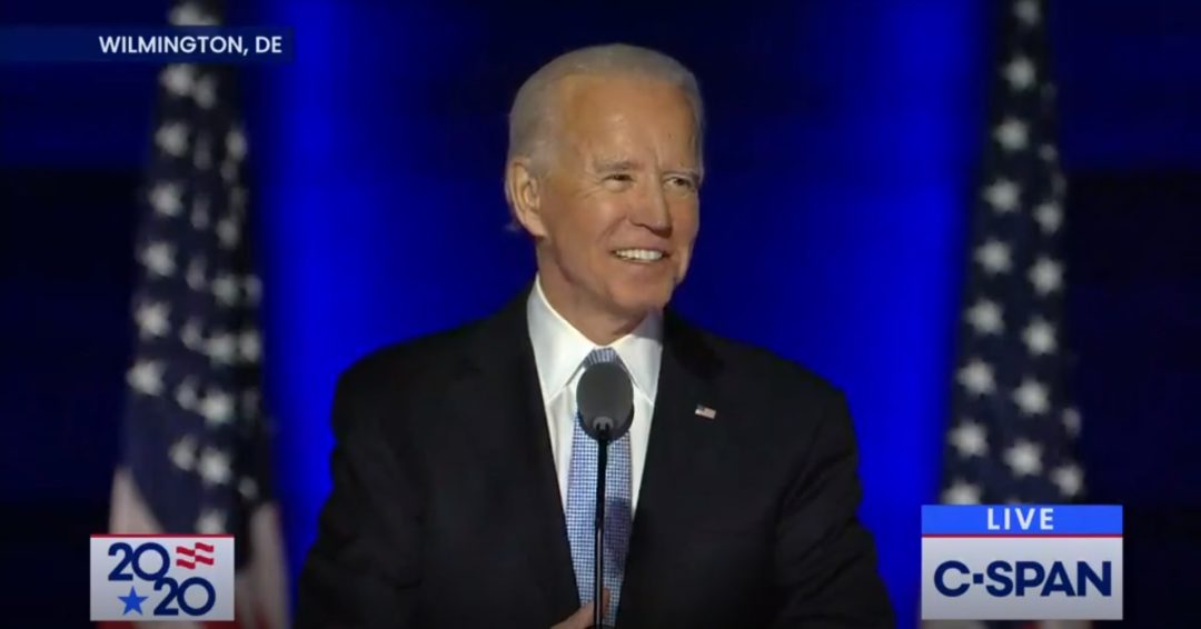 In his victory speech, President-elect Joe Biden urged an end to political acrimony and divisiveness.