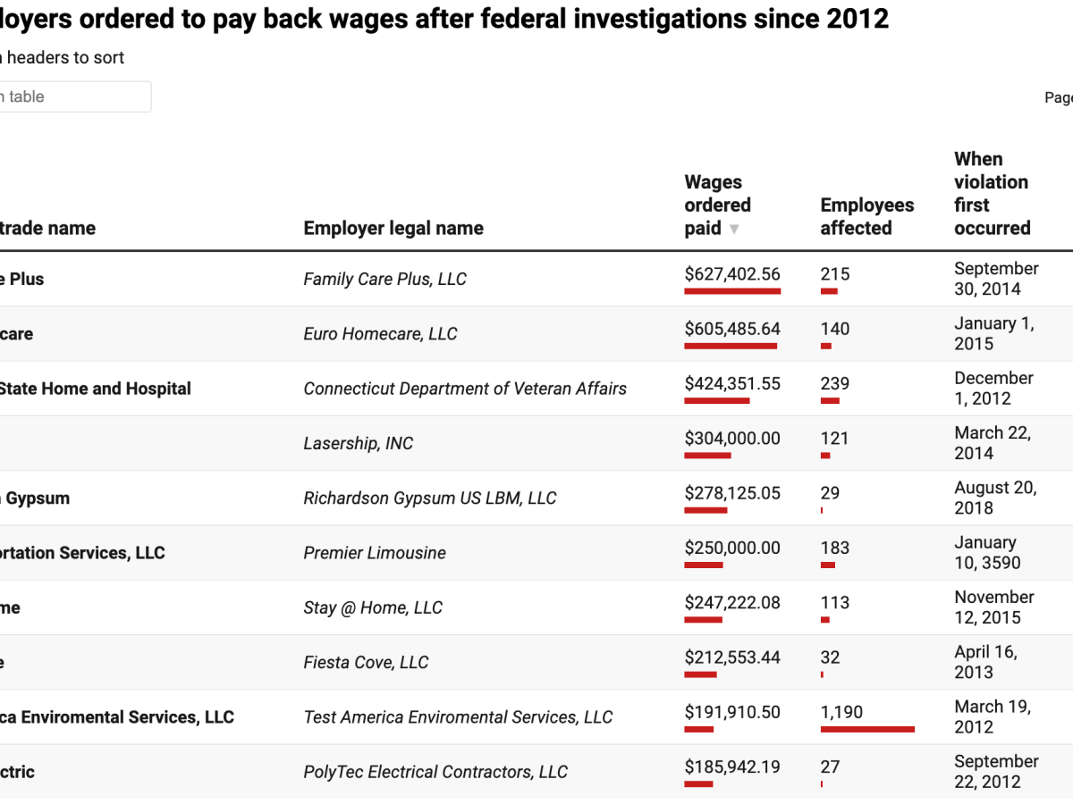 Compliance action data show that from January 2012 to April 2023, WHD ordered Connecticut employers to pay back more than $10.3 million in wages for violations of the Fair Labor Standards Act.