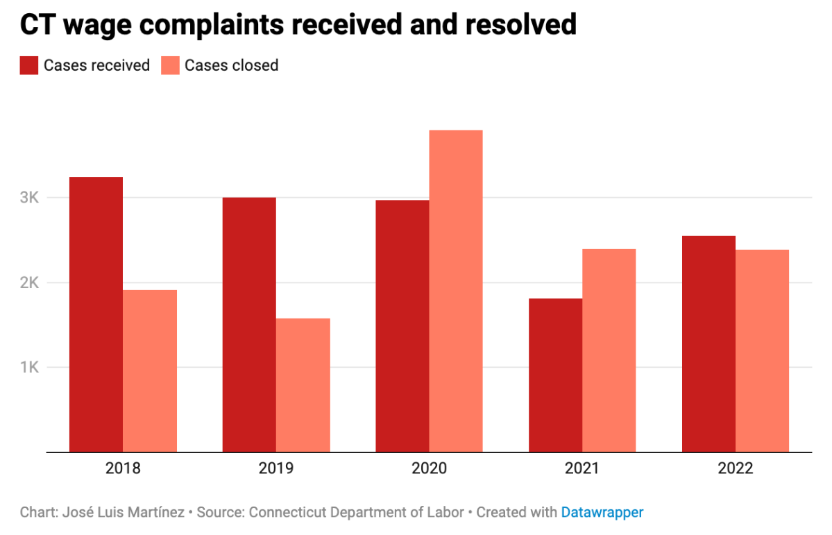 CT wage complaints received and resolved from 2018-2022