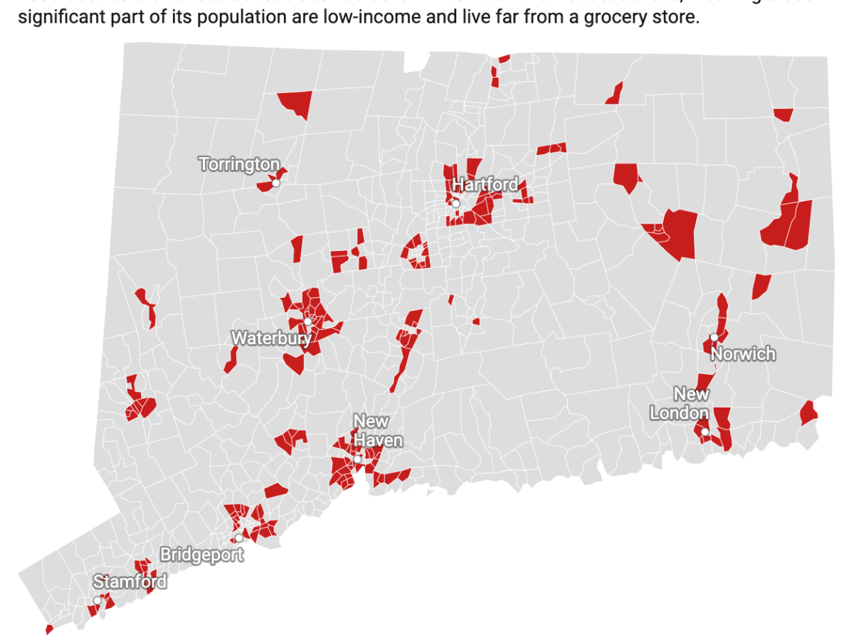 Food deserts are areas that are low-income and low-access, meaning residents live far from a grocery store. Here are the food deserts in CT.