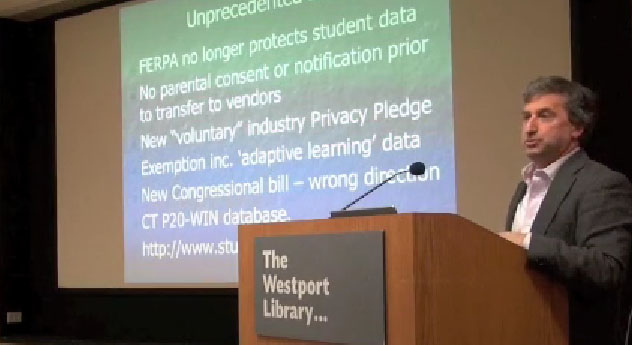Former gubernatorial hopeful Jonathan Pelto has spent a lot of time researching the Common Core curriculum and program of standardized testing that is being rolled out in Connecticut, and suffice it to say he doesn’t like or trust it. The former state legislator-turned blogger was invited to speak about this recently to parents at the Westport Library, and his hour-long presentation was recorded.