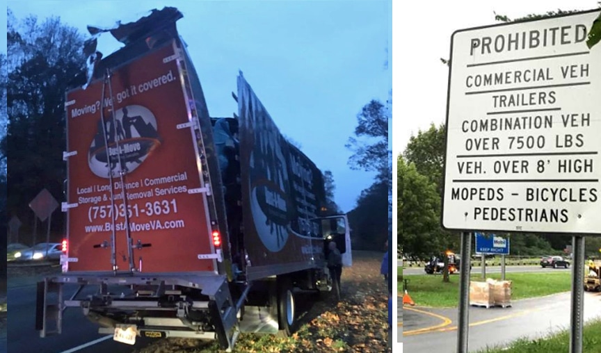 Hardly a week goes by that an over-height truck and a low-slung bridge on the Merritt Parkway have a close encounter of the worst kind: a collision.