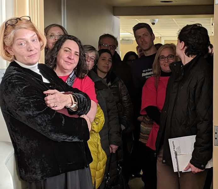 Faculty, staff crowd regents meeting to oppose college merger plan