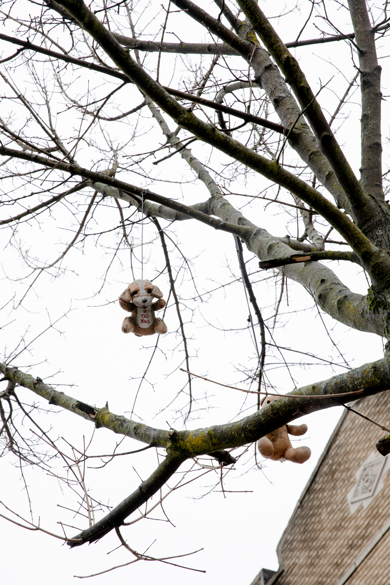 Dolls are hung in a tree in Hartford. Dolls are hung in a tree in Hartford. Credit: Yehyun Kim / CT Mirror