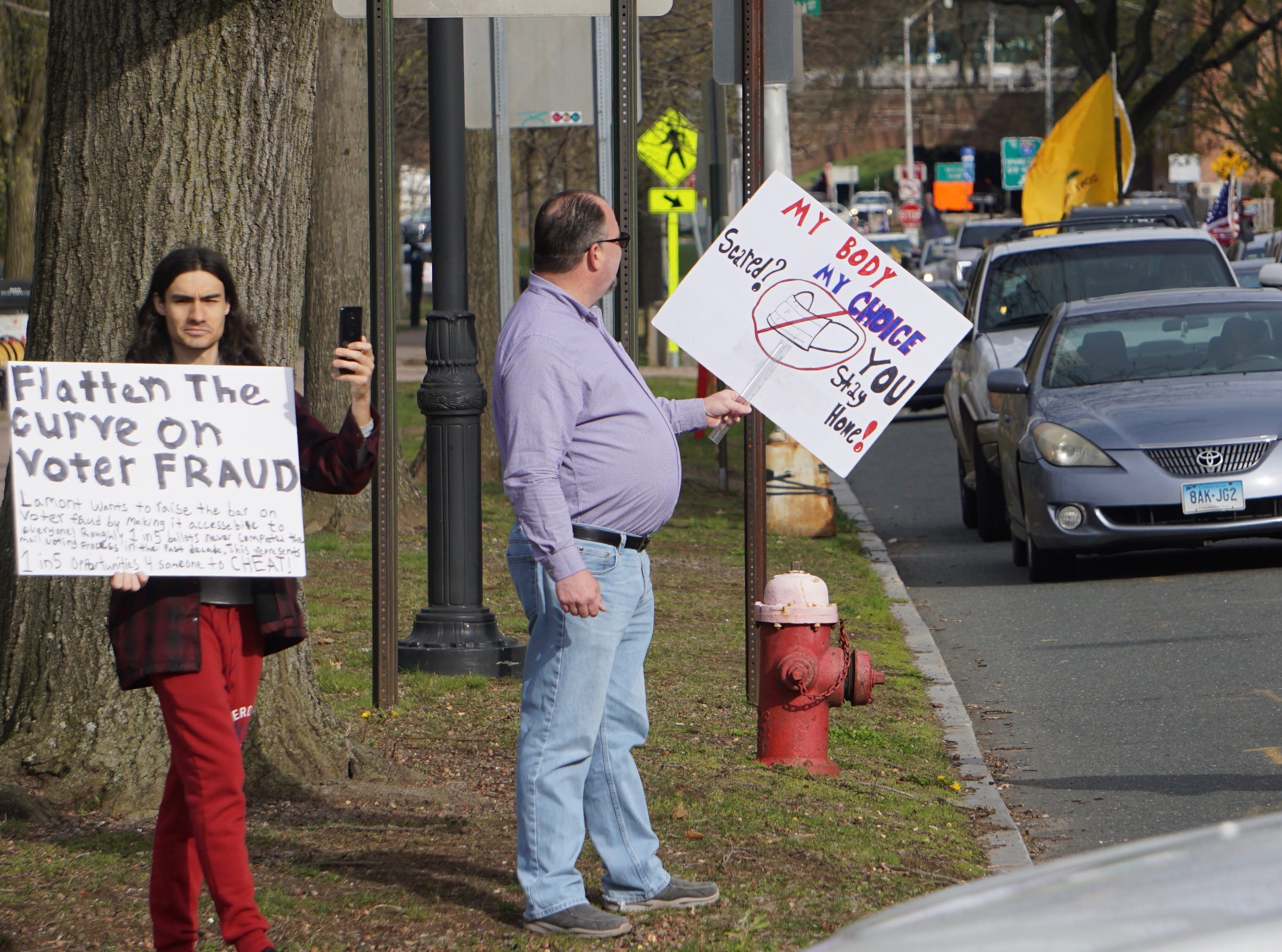 OPEN CT PROTEST APRIL 20, 2020 OUTSIDE THE CAPITOL Credit: MARK PAZNIOKAS / CTMIRROR.ORG APRIL 20, 2020 OUTSIDE THE CAPITOL