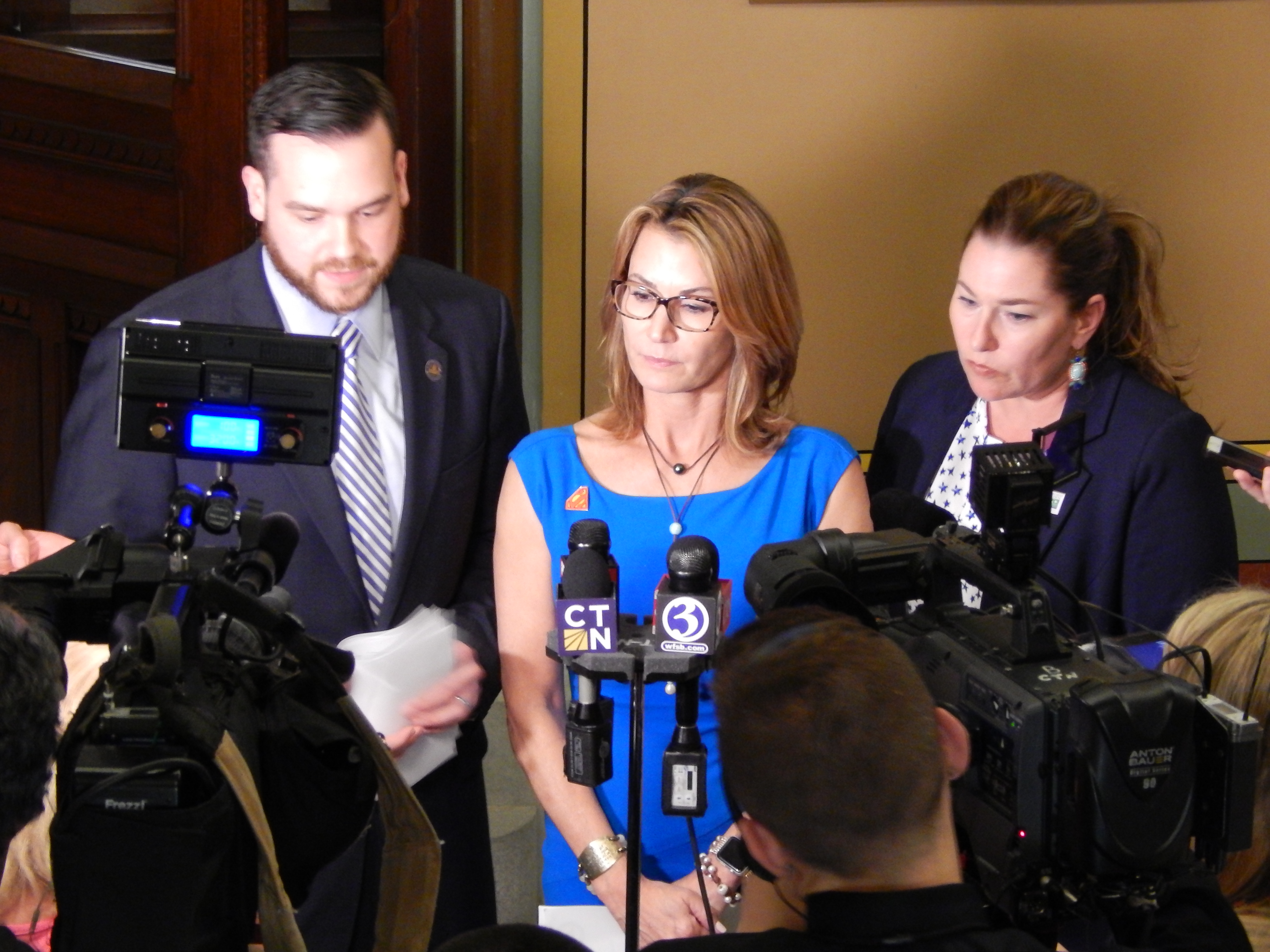 House Minority Leader Themis Klarides, R-Derby, answers questions from the media about the House Republicans’ budget proposal. She is joined by Reps. Chris Davis, R-Ellington, and Melissa Ziobron, R-East Haddam. (5/16/2017)